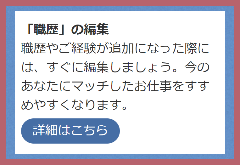 スキルチェックの実施、お仕事探し状況の更新もあわせてご確認ください。