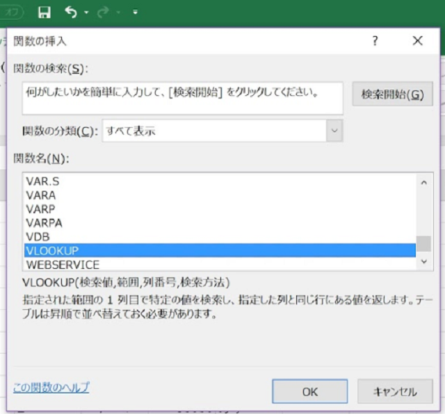 VLOOKUP関数とは、検索条件に一致するデータを指定範囲の中から探して表示してくれる関数です。