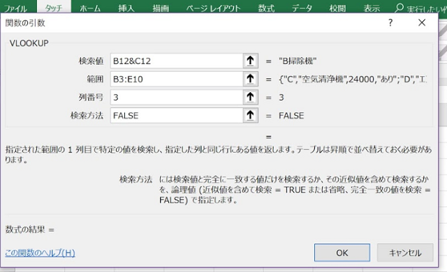 列番号:上記の範囲の何列目の値を返したいかを入力します。
