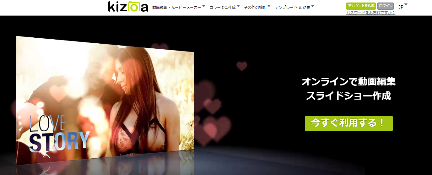 ベーシック会員は無料で、1GBの保管容量があり、動画のシェア(facebook、YouTubeなど)が行えます。有料会員と動画編集機能については差がありませんが、ベーシック会員はKizoaのロゴが挿入されます。ロゴが追加されない動画を作成したい場合は、有料会員になるとよいでしょう。