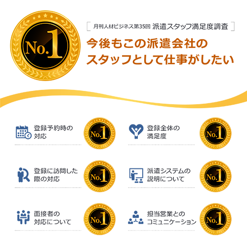 ■月刊人材ビジネス「第35回派遣スタッフ満足度調査」、7項目で1位