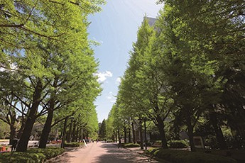 約16万平方メートルの広大な敷地に、19棟の建物がゆったりと配置され、大学の理工学部、社会情報学部、地球社会共生学部の学生・大学院生がここで学んでいます。